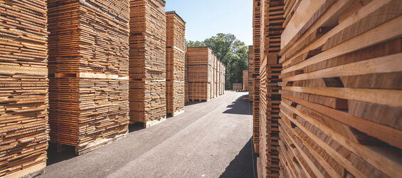 Die ausgesuchten Stämme werden mit Langholz-Lkws direkt zu uns transportiert. Kurze Wege sind uns wichtig, um ökologisch zu handeln. Es werden Rot- und Hainbuchenstämme verarbeitet. Um einen reibungslosen Ablauf zu garantieren, werden die Stämme bei uns auf dem Holzplatz zwischengelagert.