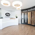 Im Neubau werden unsere Besucher von warmen Hölzern und stimmungsvoller Beleuchtung empfangen – die bei uns sprichwörtliche Qualität seit 1923 wird auch in der modernen Raumgestaltung sichtbar. Große Holzfenster sorgen außerdem für ausreichendes Tageslicht und einen offenen Blick rein und raus. Mit einem großzügigen und gemütlichen Aufenthaltsbereich und komfortablen Besprechungsmöglichkeiten haben wir außerdem noch mehr Möglichkeiten für Austausch und Erholung geschaffen.
