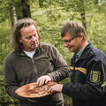 Manche sehen den Wald ja vor lauter Bäumen nicht – nicht so Herr Aichholz vom Forstamt! Mit sicherem Schritt bewegt er sich durch Gehölz und hat dabei einen geschulten Blick sowohl für den Lebensraum Wald, als auch für den einzelnen Baum. Denn heute geht es darum, das perfekte Ausgangsmaterial für die Adga-Maßstäbe zu finden.