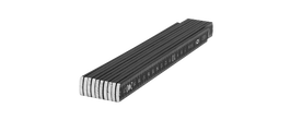 The measuring stick sections have no notches on the side, therefore it is possible to draw a straight marking line. The tight fitting sections allow for a delicate advertising print on the high-sided areas.